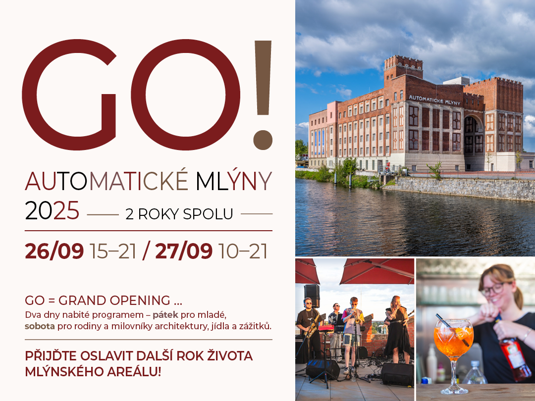 GO = Grand Opening …a letos slavíme, že už jsou to dva roky, co jsme otevřeli. Dva dny nabité programem – pátek pro mladé, sobota pro rodiny a milovníky architektury, jídla a zážitků.